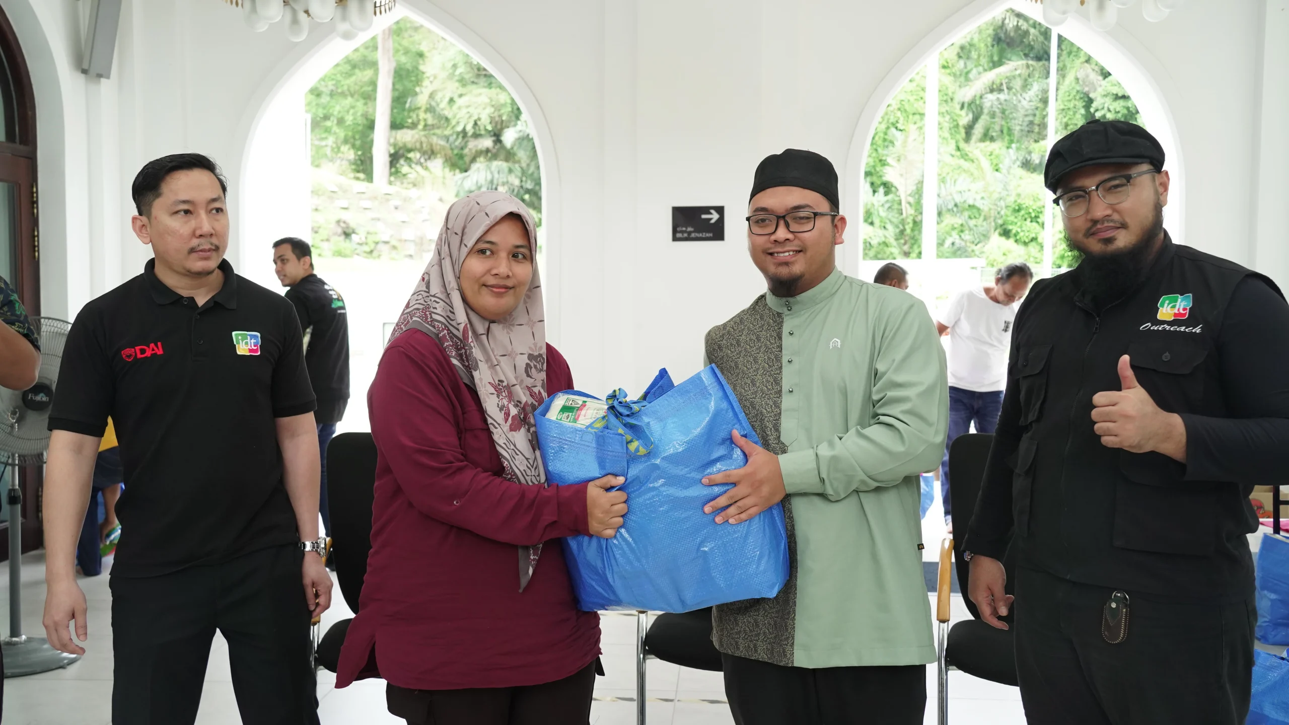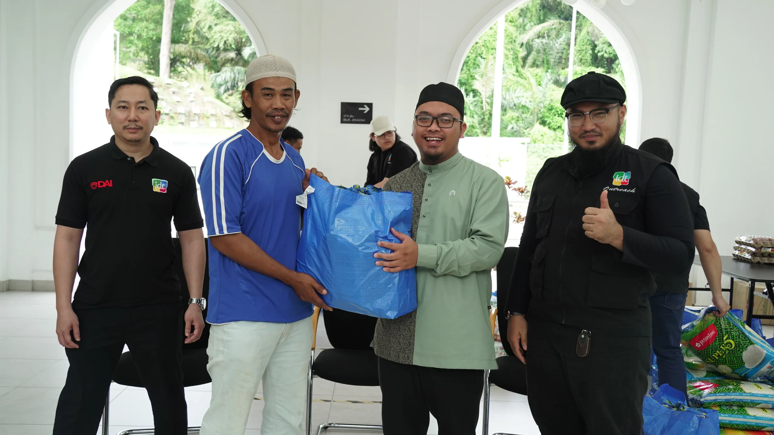 The distribution began at Masjid Raja Lumu at 11:00 am. Representatives from IDWA and IDT included Brother Naim, President of IDWA and General Manager of IDT, Brother Zakir, Treasurer of IDWA and HR and Finance IDT, and five other IDT staff. A total of 16 families received their food packs. The session was welcomed by Ustaz Luqman Hakim, Imam Pertama Masjid Raja Lumu, followed by a short remark from Brother Naim representing IDT. The morning session ended with the distribution of support by Brother Naim, representing IDWA and IDT, followed by a group photo involving all.
