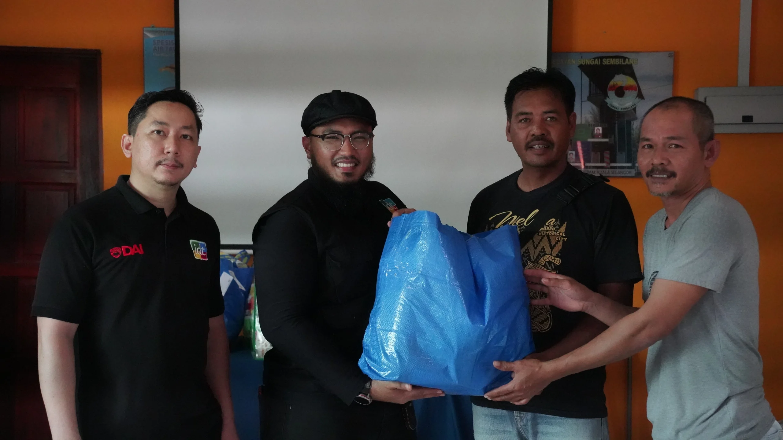 In the afternoon, the distribution continued at Kampung Sungai Sembilang, benefiting 13 more families. En Khalid, President of the Fishermen Association of Kampung Sungai Sembilang, was also present to support the program. The activities concluded around 3:00 pm. This session also ended with a group photo, with smiles shared by all.